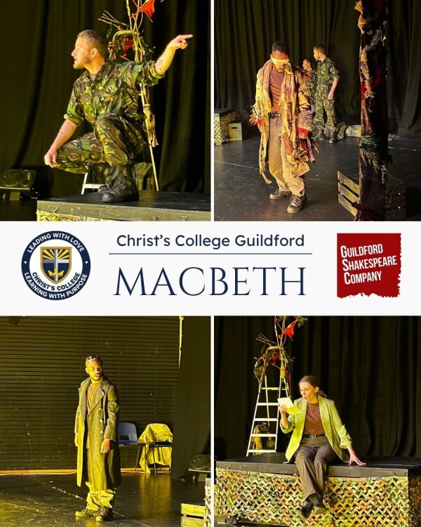 The Guildford Shakespeare company performed Macbeth for our Y11s in the Duke of Edinburgh Theatre! This play is one of the GCSE texts for English, and seeing it actually performed really added a new dimension to it. The mix of Shakespearian language and contemporary clothing brought the story of Macbeth to life and gave our students a deeper insight into their set text.