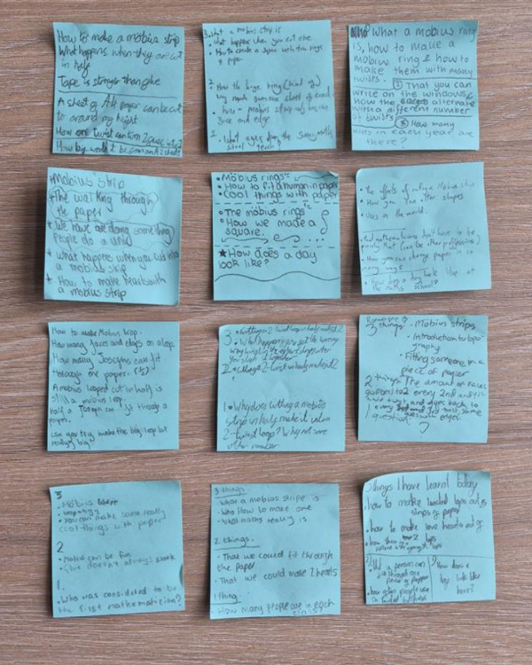 They did absolutely great, learning to understand and even create Mobius Strips, as well as making great use of the unusual writing surfaces in Surrey Maths School's awesome new building!