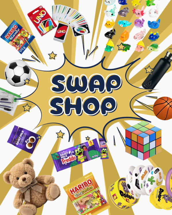 During the final week of term, the whole school was buzzing with news of the new Swap Shop! In this shop, students could cash in their house points for prizes such as books, sweets, toys, games, and more, or they could donate or save their points for next term.