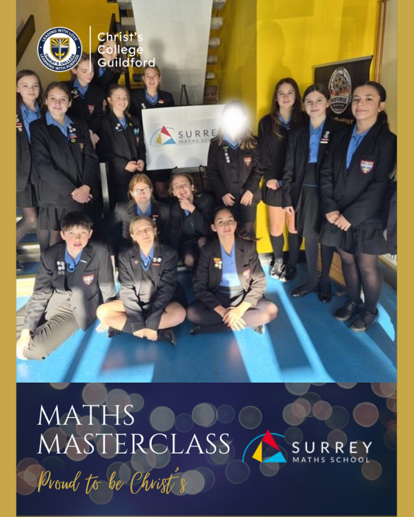 Our Y7 Maths Masterclass visited Surrey Maths school after completing a programme of challenging maths classes over this term. We are proud of our students for representing our school and achieving so much in these high-level classes.
